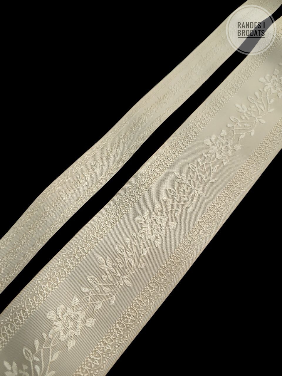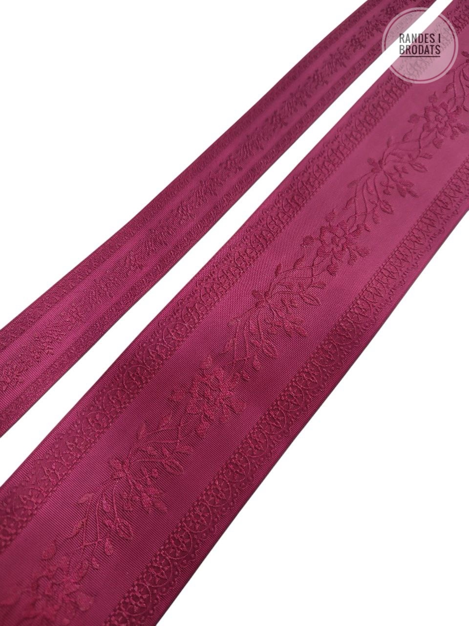 Las cintas de seda son bandas textiles utilizadas en la indumentaria valenciana. Estas se colocan  en las faldas falleras y también en los corpiños. Disponemos de cintas de seda, algodón, lino, raso…
