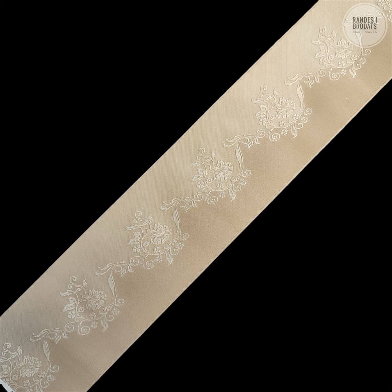 En poliéster opaco, con un delicado dibujo de trenzas a los laterales.