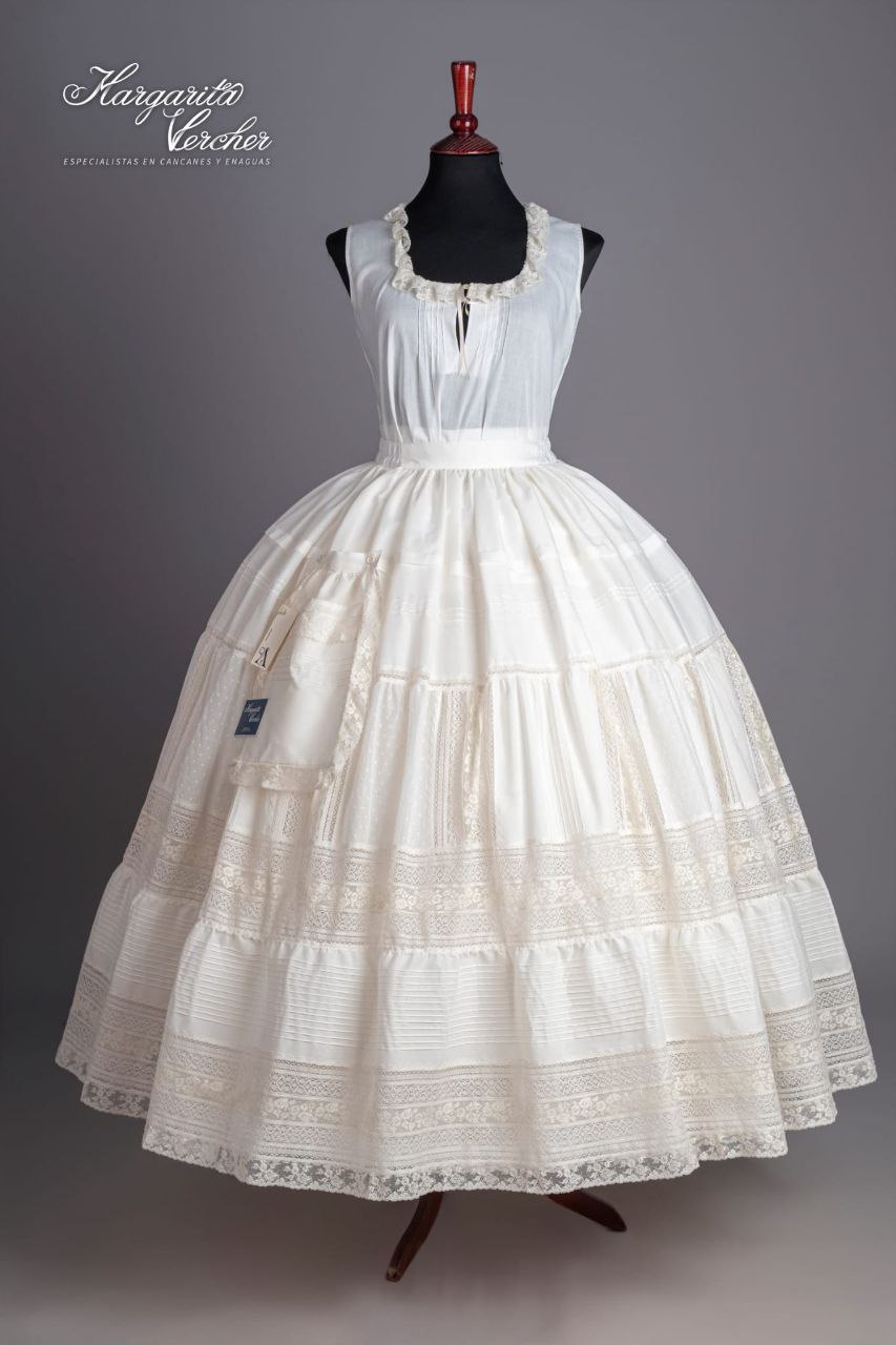 La Enagua Beatriz está confeccionada en tejido de Batista de color Beige natural.