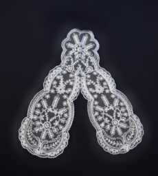 Con puntilla de valencien al tono, y detalle de entredós de Valencienne incrustado en la unión de la batista y el tul.