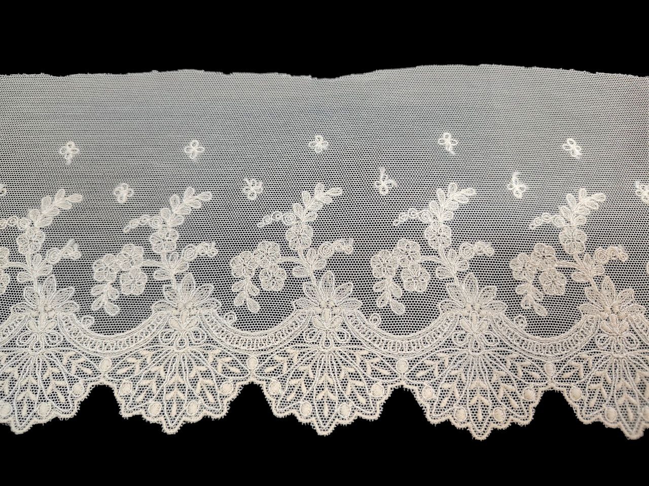 Tul de fibra bordado en hilo de algodón, con un dibujo elegante y delicado