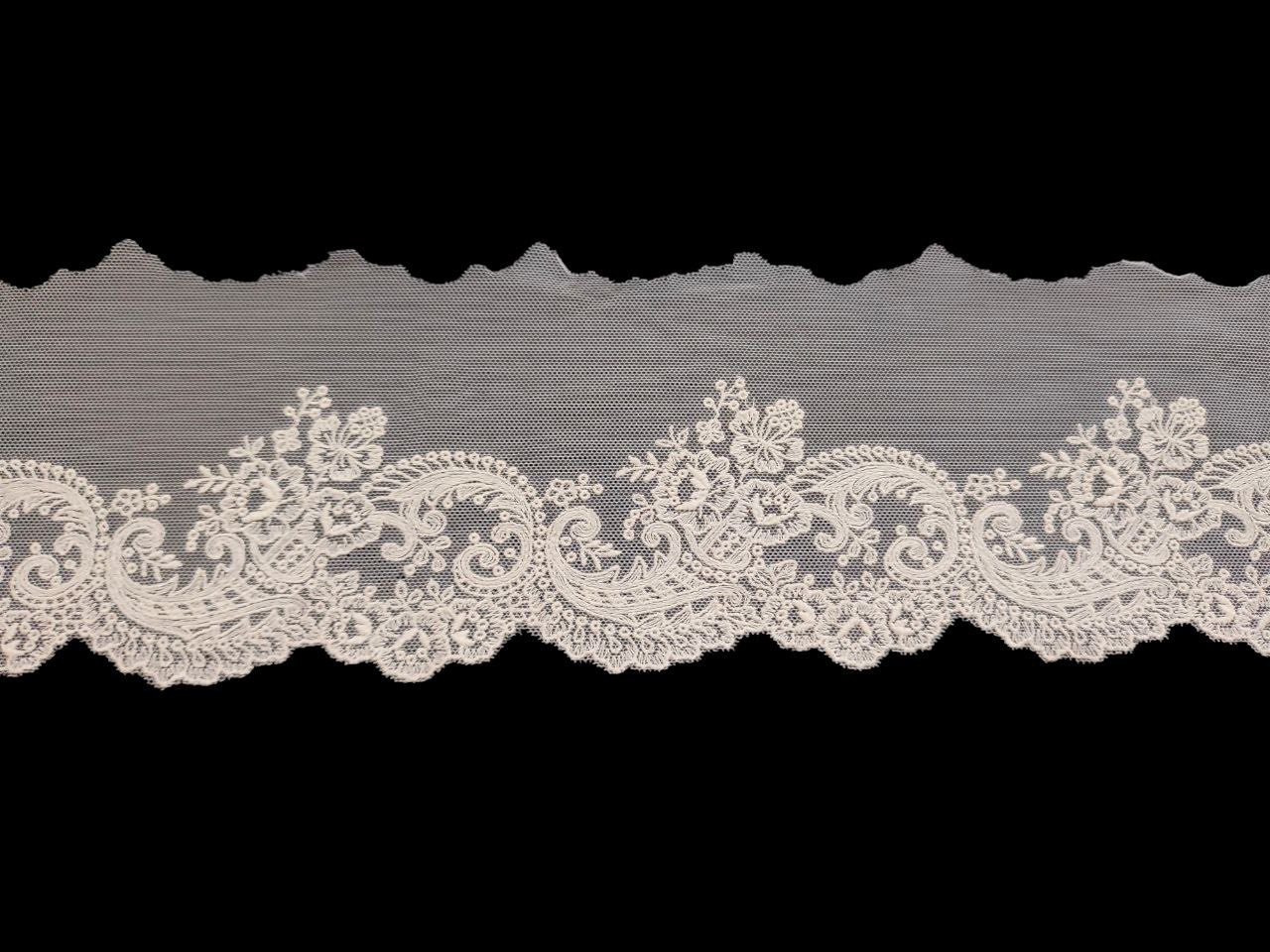 Tul de fibra bordado en hilo de algodón, con un dibujo elegante y delicado