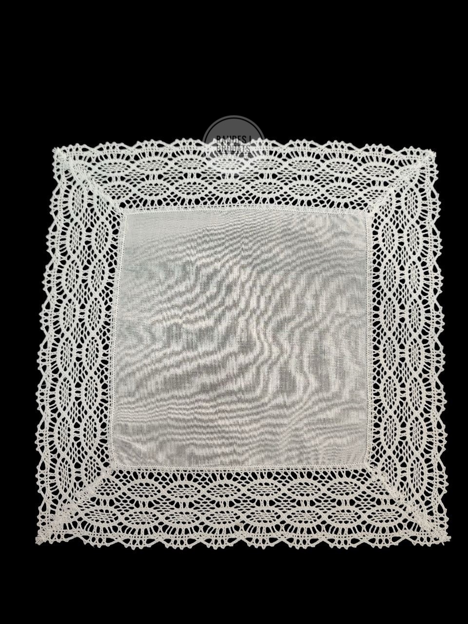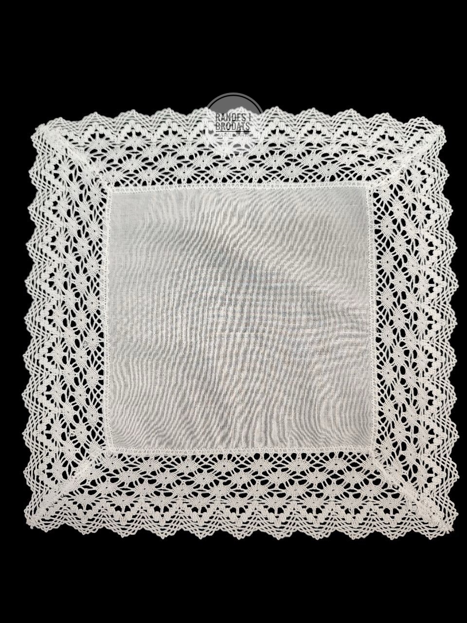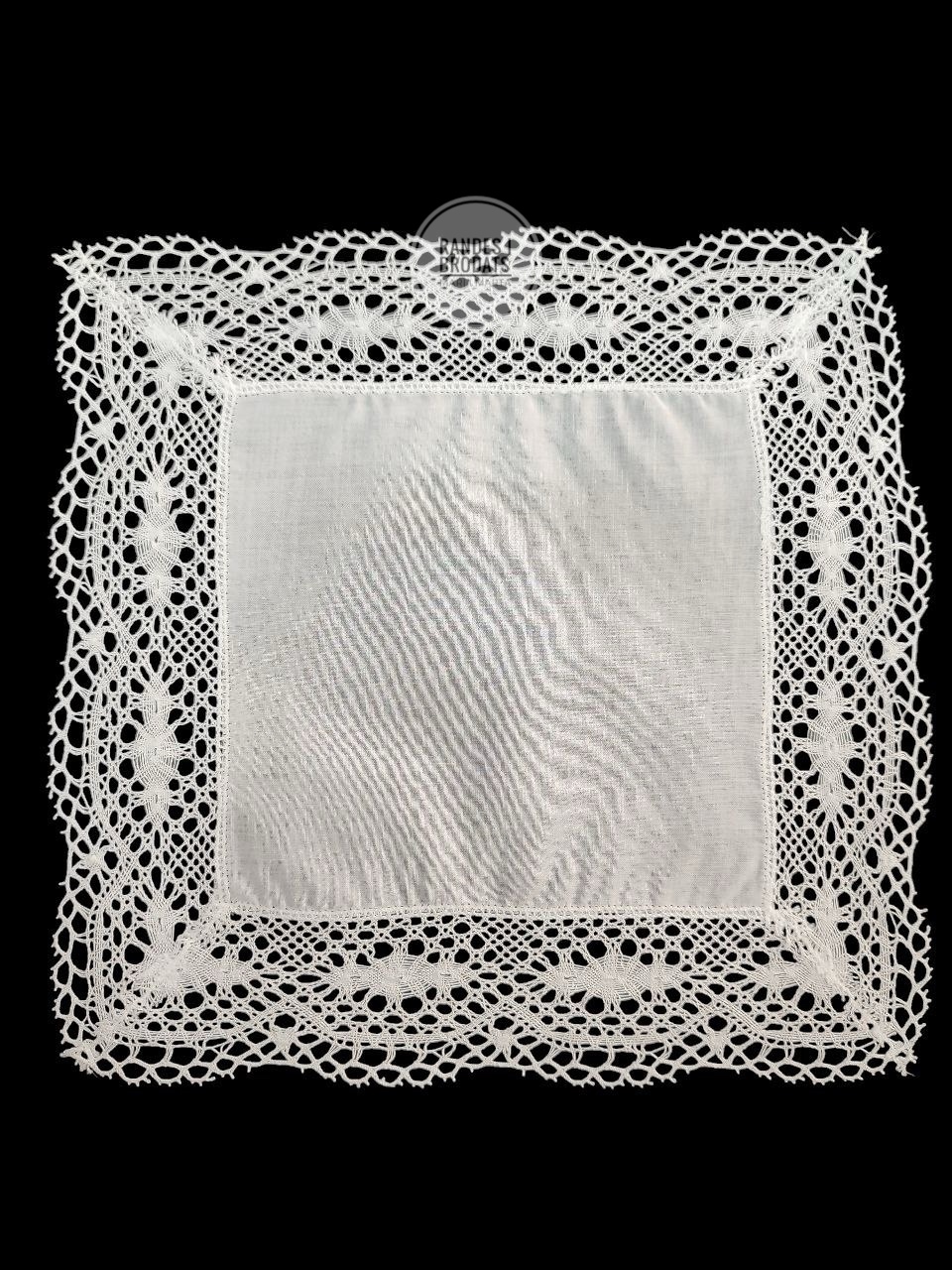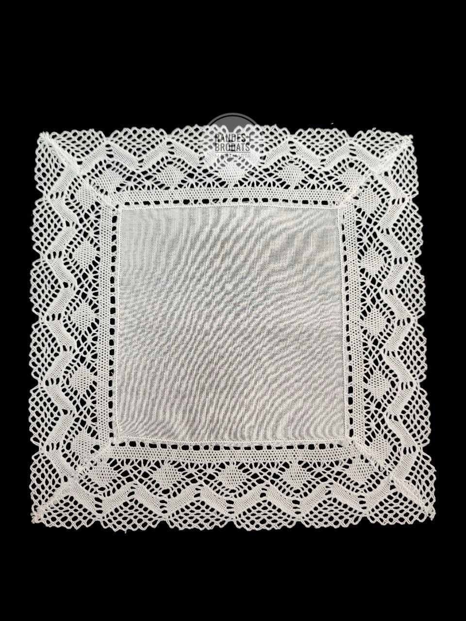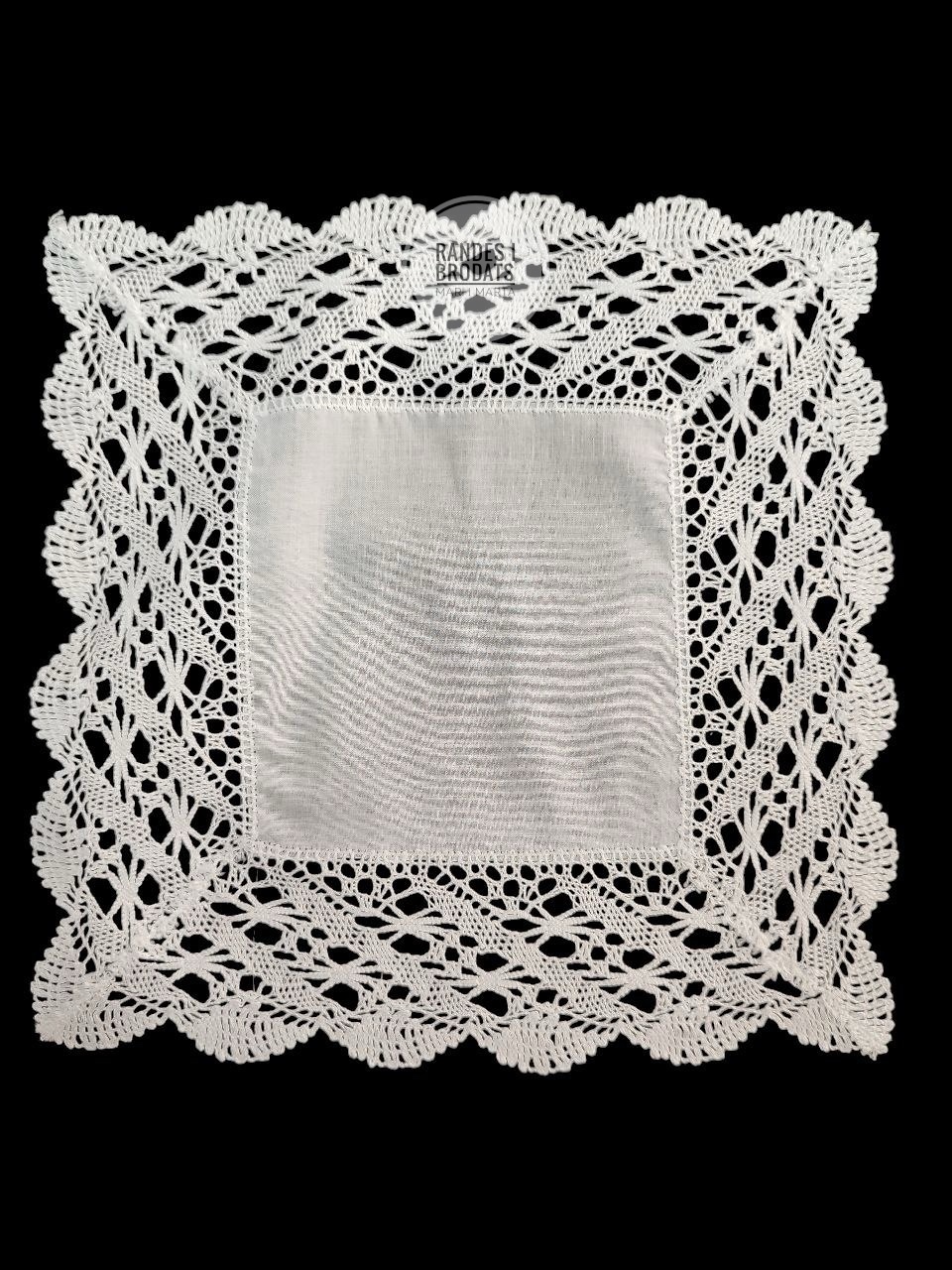 Pañuelo en tela de batista con puntilla de bolillo a máquina
