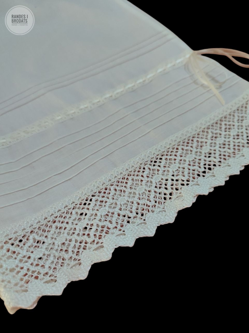 Con puntilla y entredoses de Bolillo y muchas lorcitas decorativas