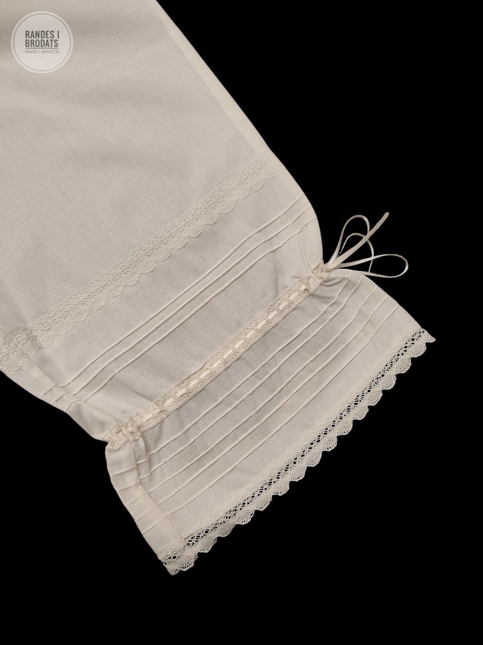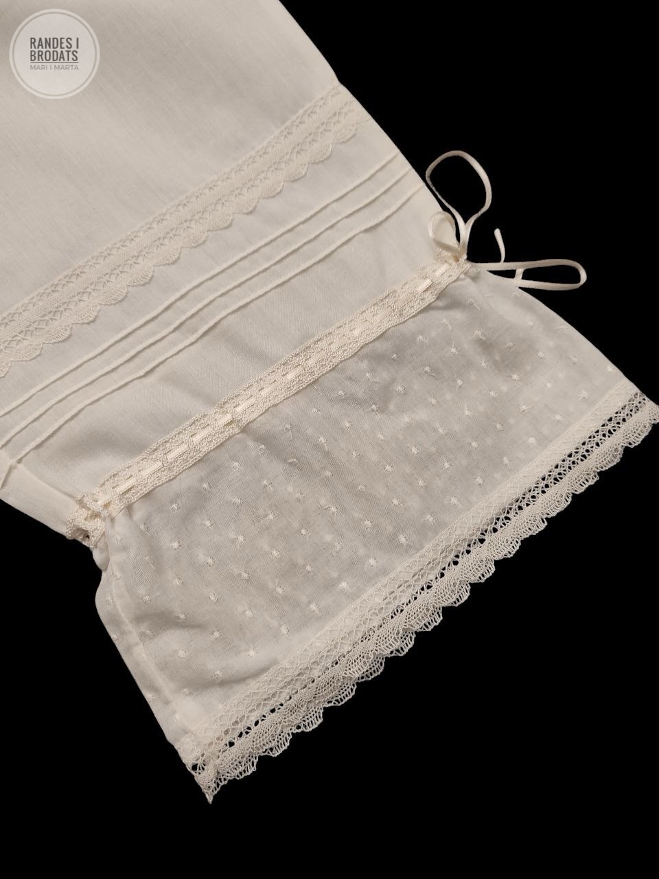 Con puntillas de Bolillo extrafino y pequeñas lorzas de decoración