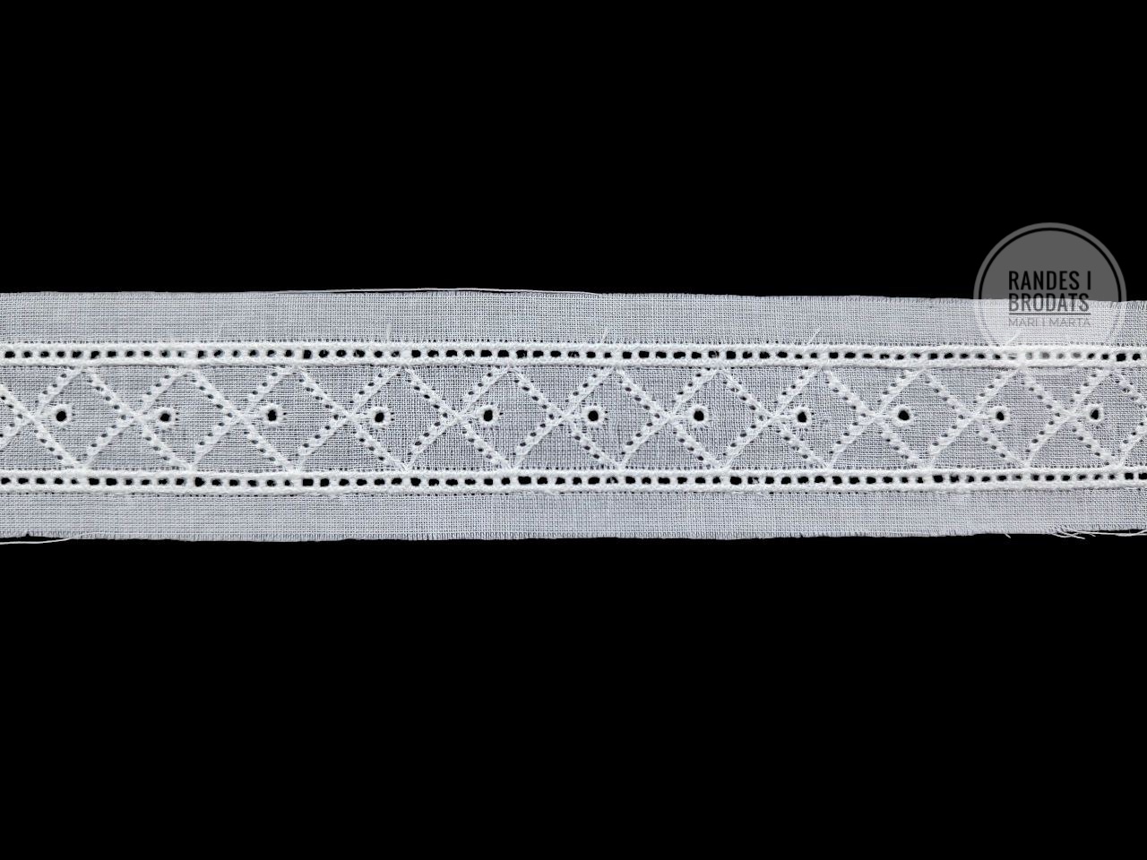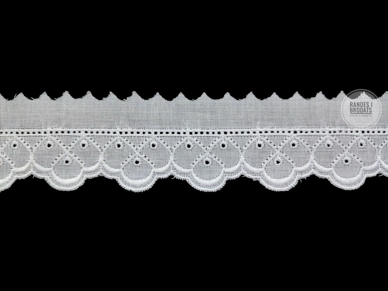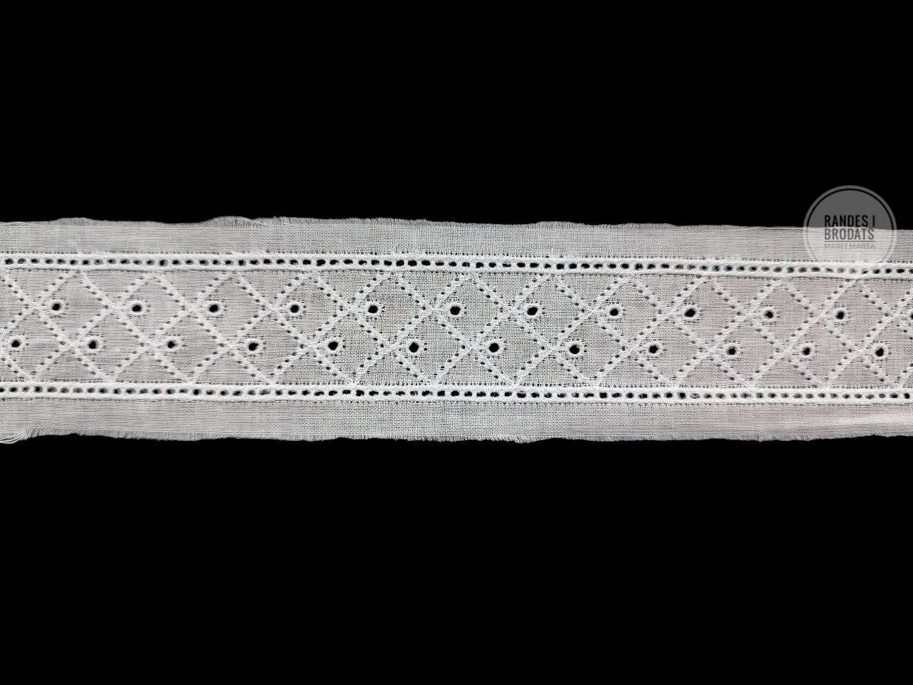 Encaje de Tira Bordada de tergal en Batista suiza, fabricado a partir de fibras de algodón.