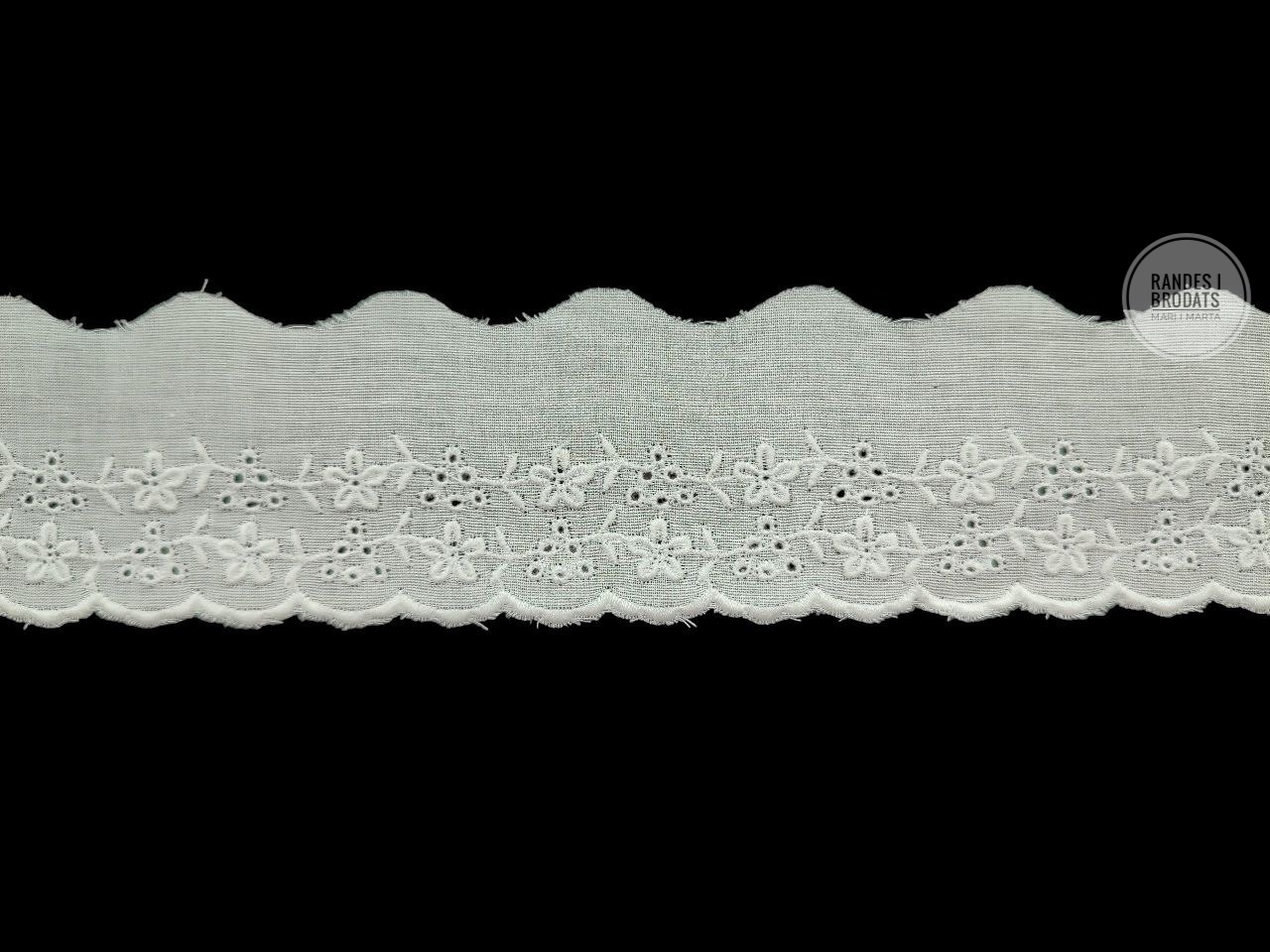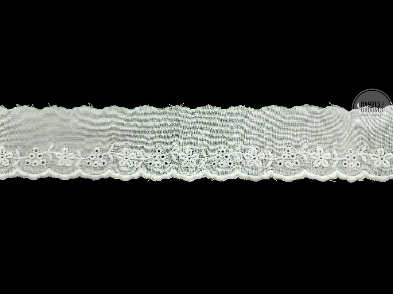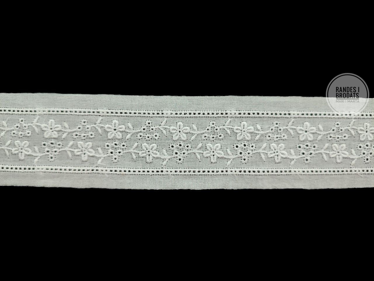 Encaje de Tira Bordada de tergal en Batista suiza, fabricado a partir de fibras de algodón.